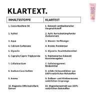 Kokosöl: antibakterieller Hauptwirkstoff, Xylit: kariesbekämpfender Zuckerersatz, Wasser: Verflu-ssiger, Kreide: Putzkörper, Glycerin: Feuchthaltemittel, fraktioniertes Kokosöl: Konsistenzgeber, Cellulosegummi: Bindemittel, milder Schaumbildner aus 100% natu-rlichen Rohstoffen, Erdbeer- und Himbeeraroma natu-rlichen Ursprungs, Magnolienextrakt aus 100% natu-rlichen Rohstoffen