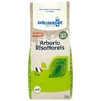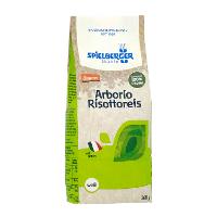 Der Risottoreis Arborio in bester demeter-Qualität wird nach der Ernte gereinigt und geschält. Danach wird das so genannte Silberhäutchen, welches das Reiskorn umschließt, schonend abpoliert. Der Arborio ist die bekannteste und am häufigsten verwendete Risotto-Reissorte. Arborio ist ein Mittelkornreis, das Korn wird etwa 7 mm lang und ist damit das größte Korn unter den italienischen Reissorten, mit einer eher rundlichen Form.  Er kann das Fünffache an Flüssigkeit aufnehmen. Der hohe Stärkegehalt sorgt dafür, dass der Reis schön cremig wird und die Körner zusammenkleben. Die Sorte Arborio sorgt für ein schön sämiges Risotto mit einem feinen Biss.   Der demeter-Reis wird in Norditalien, in der Lombardei, angebaut. Die Partnerschaft entstand bereits in den 80er Jahren zwischen dem Seniorchef der Spielberger Mühle Hans Spielberger und Senior Marsinari und wird heute von der nächsten Generation weitergeführt. Das Besondere dabei ist nicht nur die langjährige Partnerschaft auf Augenhöhe, sondern auch die Anbaumethode. Diese ist für Italien einzigartig und ähnelt der in Asien üblichen Weise. Dabei werden die Reispflanzen im Gewächshaus vorgezogen und nach einigen Tagen in Reihen direkt in die Beete gepflanzt und dann mit Quellwasser aus den Bergen geflutet. Der Vorteil: Das Unkraut kann den Reispflanzen nicht so leicht Konkurrenz machen. Gleichzeitig zeigt sich aber nach einigen Jahren Praxisanwendung, dass auch die Ökologie profitiert: Da zwischen den Reihen freie Wasserflächen stehen bleiben, gibt es in der Region heute wieder Vogelarten, die über lange Jahre nicht mehr zu sehen waren.    Sowohl der Anbau, als auch die Verpackung steht für Nachhaltigkeit. Sie basiert zu 100% auf dem nachwachsenden Rohstoff Holz. Sie können vollständig im Altpapier gesammelt und zu 100% recycelt werden. Durch eine dauerhafte Partnerschaft mit dem Bergwaldprojekt e.V. finanziert die Spielberger Mühle jedes Jahr das Pflanzen von Bäumen sowie die Pflege und den Erhalt des bestehenden Waldes. Letzteres ermöglicht dem Wald, sich auf natürliche Art zu verjüngen - das heißt neue Bäume wachsen und der Wald gedeiht. Damit wird der Papierkreislauf geschlossen, indem der Papierverbrauch für die Verpackungen ausgeglichen und der Natur etwas zurückgegeben wird.