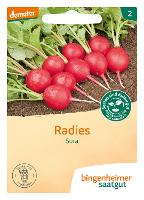 Festes, karminrotes Radies mit schöner runder Form, dass für die gesamte Freilandsaison geeignet ist. Sora bleibt lange fest und zart, selbst wenn es größer wird. Radieschen ist eine anspruchslose Kultur, die in beinahe jedem Boden gedeiht. Eine gleichmäßige Wasserversorgung ist wichtig, sonst gehen die Radieschen vorzeitig in Blüte und werden pelzig oder zu scharf."TIPP": Die Blätter werden gerne von Erdflöhen besucht. Abhilfe: Anbau unter Vlies oder durch regelmäßiges Hacken für eine feinkrümlige Bodenoberfläche sorgen.
