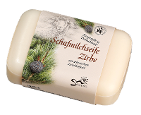 Schafmilchseife Zirbe 100g Stück mit Banderole, mit ätherischem Zirbelkieferöl, BDIH zertifiziert