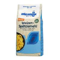 Griffiges Spezialmehl für die Herstellung von Spätzle, Schupfnudeln, Knöpfle und Nudeln aus Weizen. Außerdem kann es sehr gut für Strudelteig und lockeren Hefeteig verwendet werden; Die optimale Vermahlung sorgt für einen elastischen Teig, der nicht zerreißt und sich gut verarbeiten lässt. Ergibt typische Spätzle mit perfektem Biss und seidiger Konsistenz.Grundrezept: Schwäbische SpätzleZutaten pro 100 g Weizen-Spätzlemehl: 1 Ei, etwas Salz und ca. 40-50 ml Wasser Zubereitung:(1) Alle Zutaten in einer Schüssel vermengen und so lange kräftig rühren, bis der Teig Blasen wirft. Je nachdem, ob die Spätzle vom Brett geschabt oder durch eine Spätzlepresse gedrückt werden, kann die benötigte Wassermenge leicht variieren.(2) Reichlich Salzwasser in einem großen Topf zum Kochen bringen. Den Teig portionsweise vom Brett in das Wasser schaben oder durch eine Spätzlepresse hineindrücken. (3) Die Spätzle sind gar, sobald sie an die Oberfläche steigen. Mit einer Schaumkelle herausnehmen und gut abtropfen lassen.
