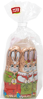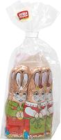 Massive Schokoladen-Osterhasen mit kindgerechtem Motiv in Stanniolpapier verpackt