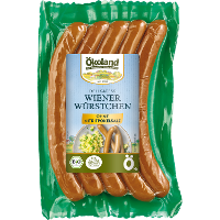 Die Ökoland Wiener Würstchen schmecken als Heißwürstchen zu Salaten, im Eintopf oder klassisch mit Senf im Brötchen.Tipp: zum Öffnen der Packung oberen Zackenrand einreißen.