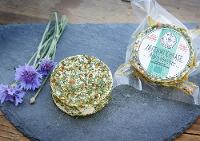 Der milde und cremige Weichkäse vom Ziegenhof Rösebach in Thüringen, ummantelt von bunten Gartenkräutern, mit leichter Chilinot