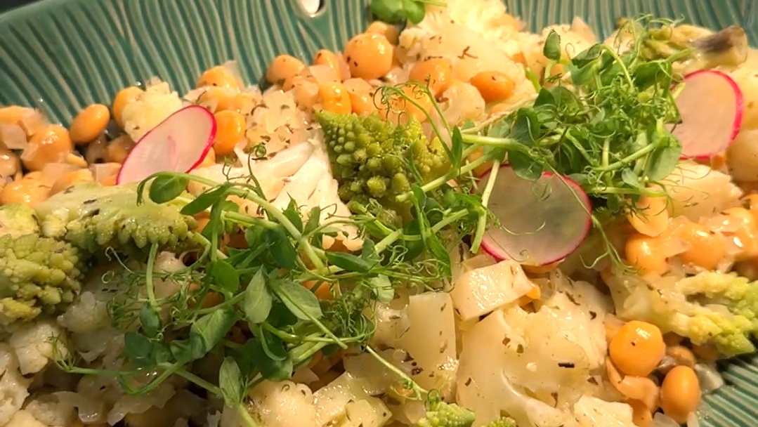 Zuerst Blumenkohl in Röschen schneiden. Den Strunk schälen, schneiden und wie Röschen verwenden. In einer Schüssel mit etwas Salz und Ohne Knoblauch Gewürz vermengen und etwa 8 Minuten dämpfen. Herausnehmen und beiseitestellen. Währenddessen Zwiebel schälen und in feine Würfel schneiden und Tapas Lupinos abtropfen lassen. Ihr könnt die Lupinos mit Schale essen – oder sie schälen, indem ihr die Lupinos vorsichtig zwischen Daumen und Zeigefinger zerdrücken, bis der Kern herausrutscht. (Es wird etwas eleganter, wenn man sie schält, sie schmecken aber auch mit Schale.)