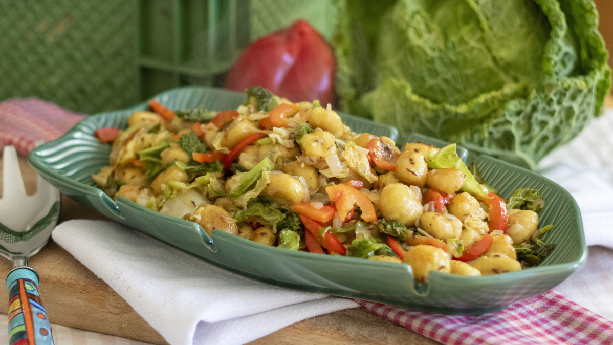 Ein Rezept aus der Kategorie „schnell und lecker“. Ohne viele Zutaten, ohne lange Vorbereitung - und das Beste: Man braucht nur eine Pfanne. Es handelt sich um „a schlamperts Kraut“, zu Deutsch: Schlampig geschnittenes Kraut, mit Gnocchi.