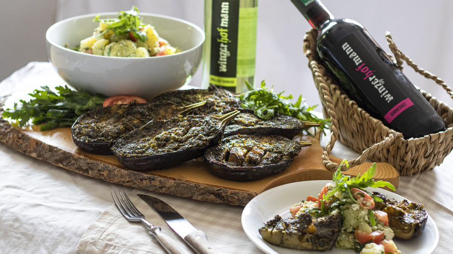 Die kraftvolle Marinade, die wir über Nacht ziehen lassen, gibt der Aubergine durch und durch Geschmack. Auch als kalte Antipasti geeignet.