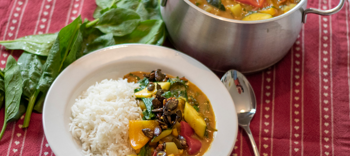 was gibt es heute? Oft wird mir diese Frage schon gestellt, bevor ich selbst überhaupt weiß, was es geben wird. Immerhin gibt der Kisteninhalt das Rezept vor und es braucht eine kurze fachliche Abstimmung, oft kombiniert mit einer kreativen Runde. Auf meine Gegenfrage, was denn gewünscht wird, kam ganz entschieden: „Reis!“ Alles klar, der geplante Kisteninhalt schreit förmlich nach Gemüsecurry!
