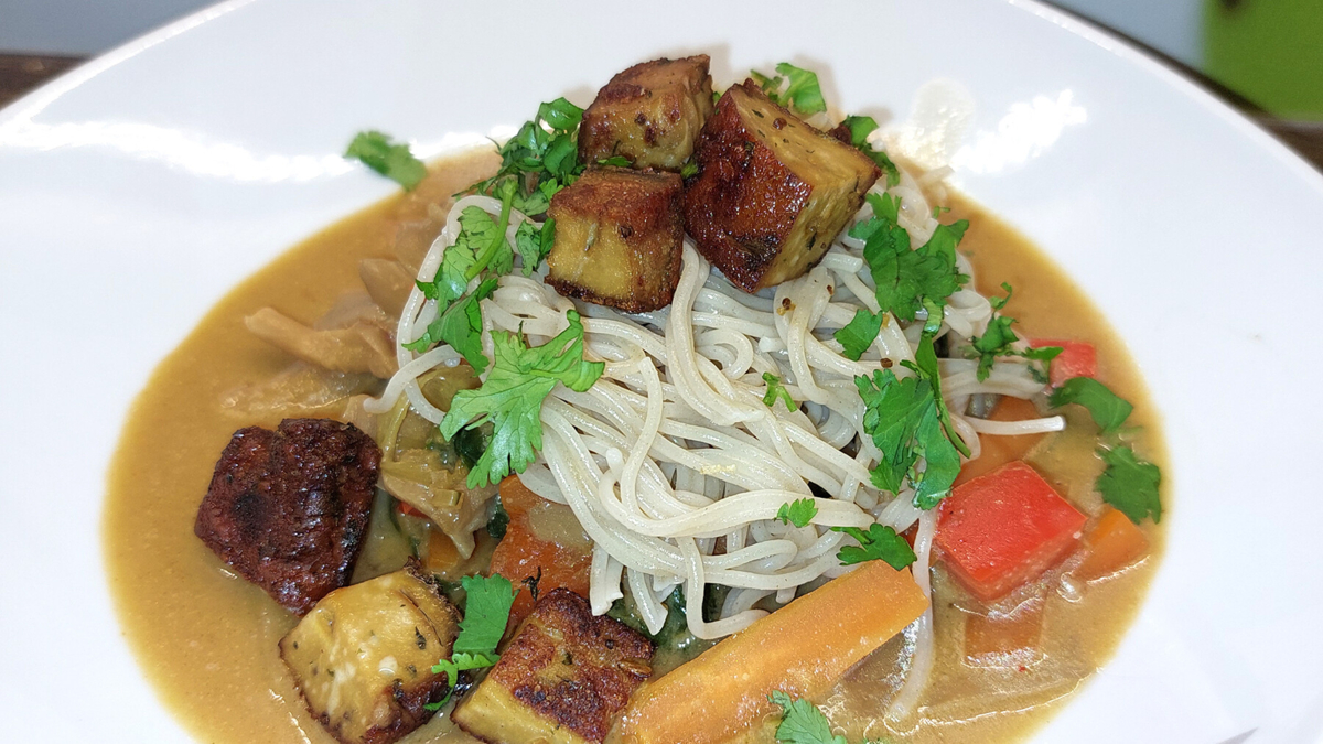Erstmal ist Schnippeln angesagt! Pilze, Karotten, Lauchzwiebeln und Pak Choi in Streifen schneiden. Zwiebeln und Knoblauch fein würfeln, Paprika und Tofu grob würfeln. In einer großen Pfanne oder im Wok 1 EL Erdnussöl heiß machen. Zuerst Zwiebeln andünsten, dann restliches Gemüse, bis auf Pilze und Knoblauch, dazu geben und ca. 2-3 Minuten anschwitzen. Mit 200 ml Gemüsebrühe ablöschen. Temperatur runter drehen und etwas köcheln lassen. In der Zwischenzeit könnt ihr die Tofu- Würfel in einer separaten Pfanne, ebenfalls mit etwas Erdnussöl anbraten und dann warm stellen/halten. Zurück zum Gemüse! Jetzt die Pilze und den Knoblauch in die Pfanne geben. 1 EL Sojasauce, 3 EL Miso-Paste und 2 EL Erdnussmus zum Gemüse geben und alles verrühren. Wenn die Sauce zu cremig ist, einfach bisschen Wasser nachgießen. Wer es noch cremiger mag, gibt noch etwas Miso und Erdnussmus zu. Zum Schluss min. noch 1/2 TL Chillipaste reingeben. Gemütlich köcheln lassen, die Ramennudeln nach Packungsanleitung kochen -> Fertig! Jetzt noch alles schön auf dem Teller anrichten und genießen! Wer mag mit einem Glas gekühlten Weißwein.