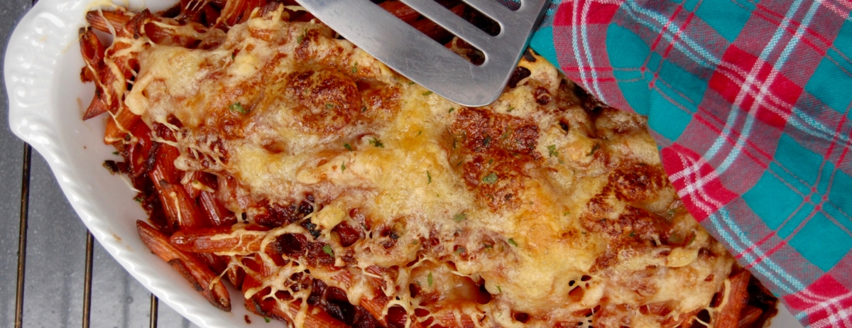 Das Gemüse mit den Nudeln mischen und in eine gefettete Auflaufform geben, mit dem Käse bestreuen und bei 180-200° etwa 40 Minuten goldbraun überbacken.