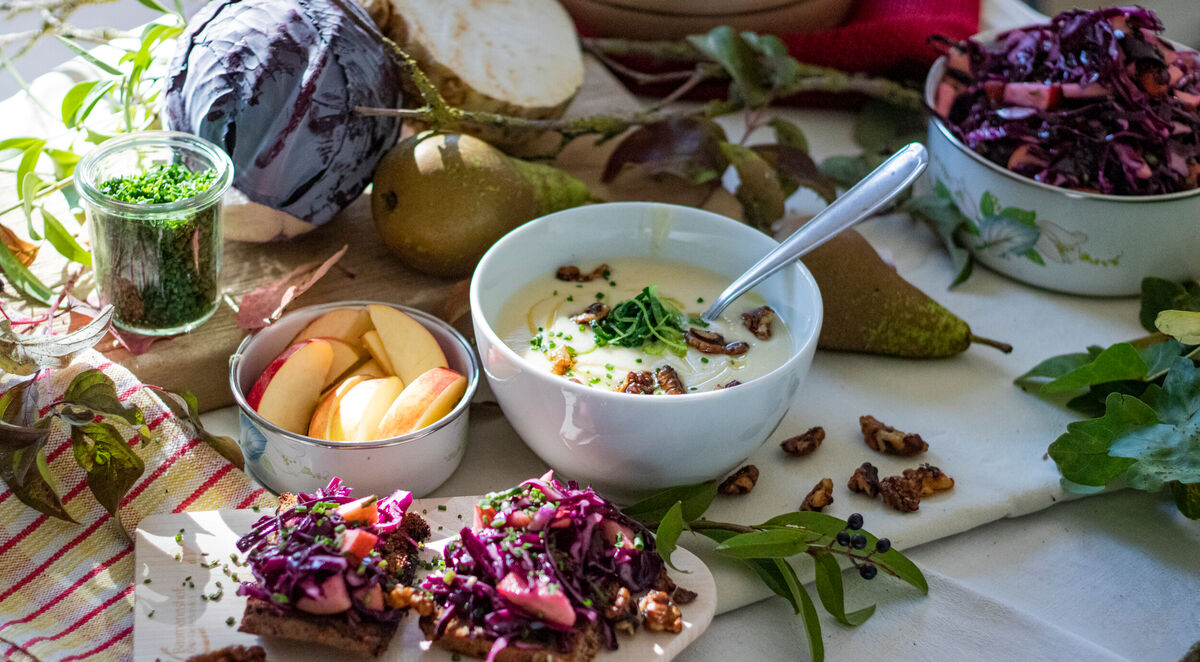 einer meiner Lieblinge in der Küche ist definitiv Sellerie. Er ist leicht zu verarbeiten, ergiebig und schmeckt lecker, wenn auch nicht jedermanns Sache. Dabei ist er unglaublich gesund. Jedenfalls passt die Erdknolle wunderbar zu den in Bäumen hängenden Birnen. So schließt sich wiederum ein ernährungsphysiologischer Kreis. Es ist immer sinnvoll verschiedene Elemente in der Nahrung zu vereinen. Erde durch Sellerie und Luft durch die Birne. Mit ein bisschen Lauch, Petersilienwurzel und mit einem ordentlichen Schluck Wein abgelöscht ist das Ganze auch wirklich lecker.