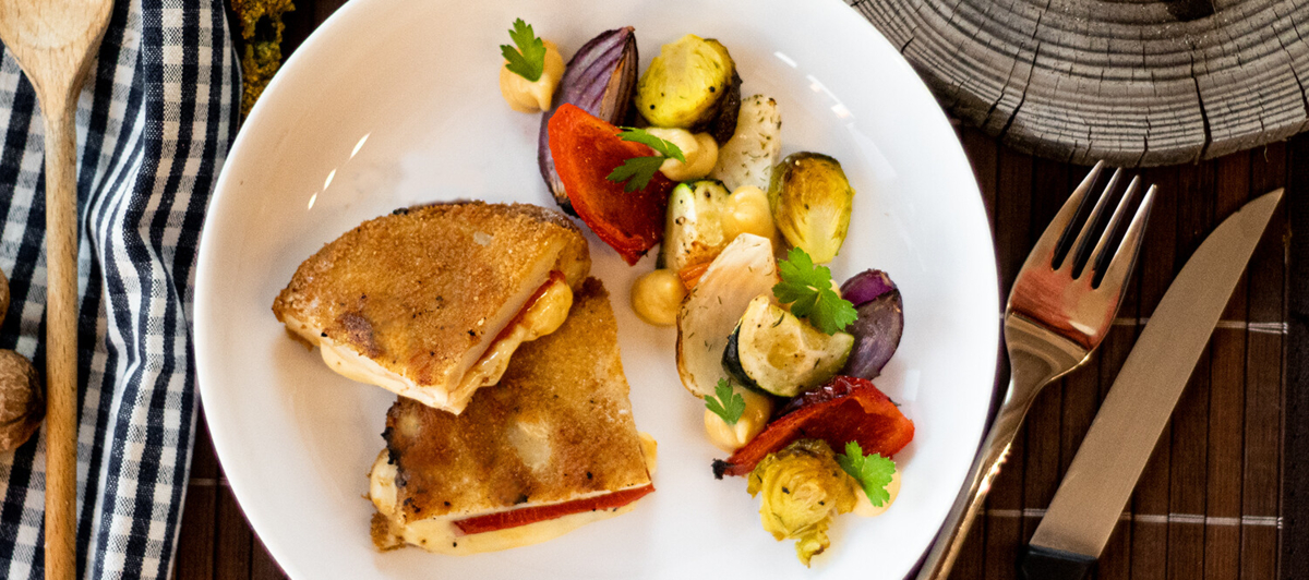 Zum Sellerie Cordon bleu passt ein grüner Salat sowie ein italienischer Gemüsesalat.