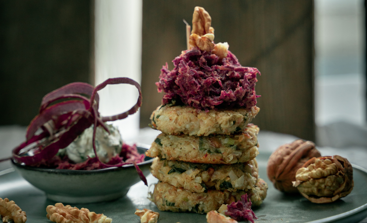 Zwiebel schälen und in feine Würfel schneiden. Sellerie mit Walnüssen, Lauch und Zwiebeln gut vermischen, Hafermilch unterrühren. Chili, Haferflocken, Dinkelvollkornmehl und Kartoffelstärke untermengen, so dass der Teig nicht zu weich ist; evtl. noch etwas Stärke nachgeben. Zitronenschale untermischen und kräftig mit Salz und Pfeffer würzen. Den Bratlingteig mindestens 45 Minuten quellen lassen.