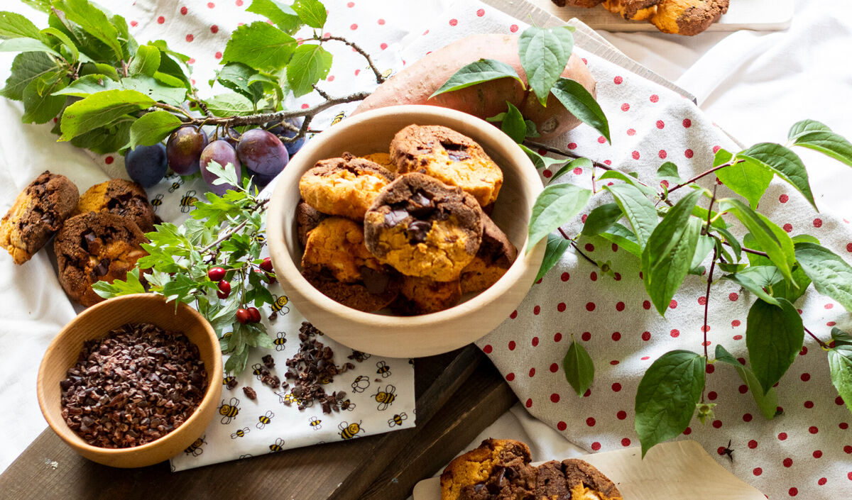 Nächste Woche gibt es Süßkartoffeln in der Kiste und was damit machen? Pürree, Suppe, Pommes, Kartoffelecken... Irgendwie hatte ich auf nichts davon wirklich Lust und da ploppte diese Idee hoch. Irgendwo im Internet habe ich das wohl mal aufgeschnappt. Also gab es in der Mittagspause für die KollegInnen Cookies. Nach Skepsis bei einigen KollegInnen konnte die Leckerei sie dann doch überzeugen.